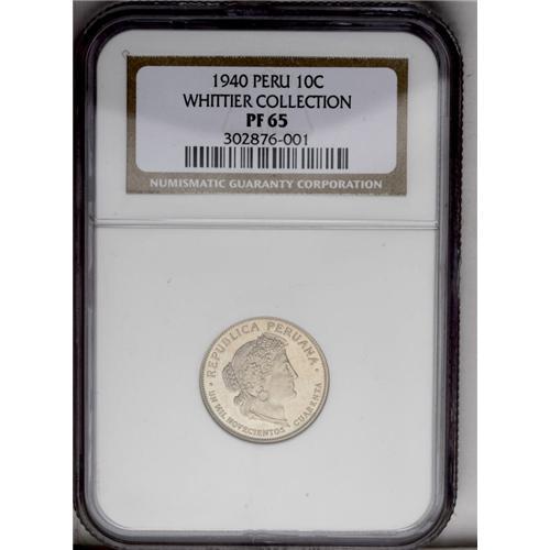 <B>Republic Proof 10 Centavos 1940, </B></I>KM214.2, Proof 65 NGC, a choice unflawed example, very scarce.