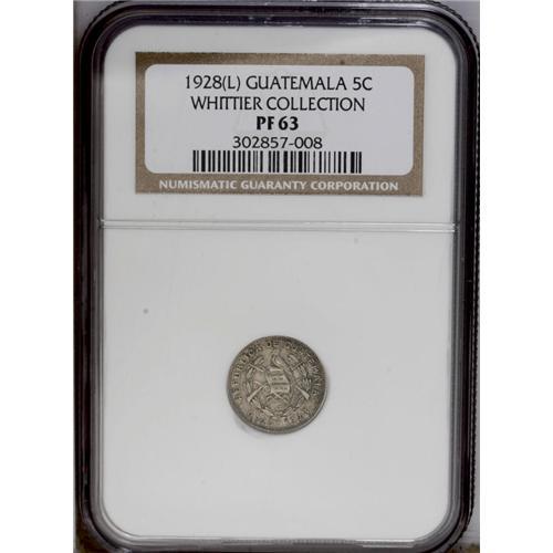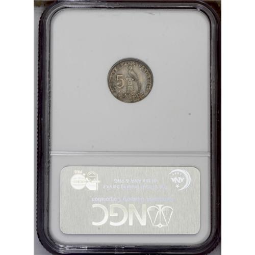<B>Republic Proof 5 Centavos 1928, </B></I>KM238.2, Proof 63 NGC, lightly toned with exceptionally sharp details, rare as a Proof.