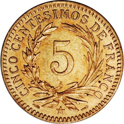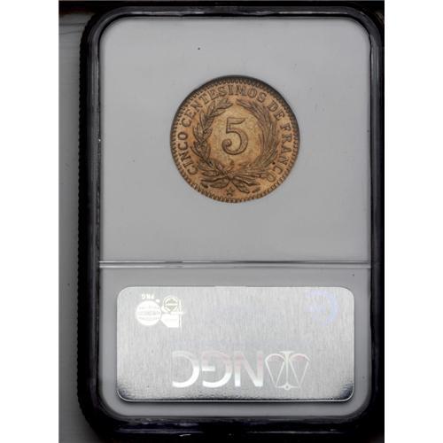 Republic Proof 5 Centesimos 1891A, KM8, Proof 65 NGC Re Republic Proof 5 Centesimos 1891A,