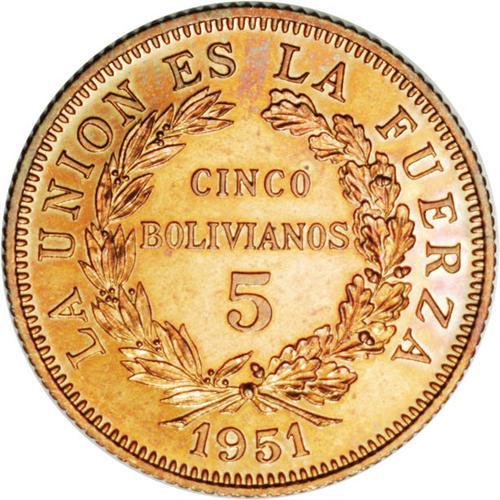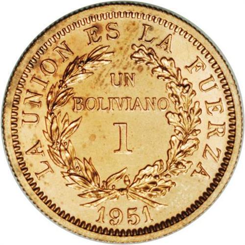 <B>Republic Proof Set 1951, </B></I>KM184, 185 and 186, the 1, 5 and 10 Bolivianos without mintmark grading NGC Proof 64 Red, Proof 63 Red & Brown and Proof 64 Red & Brown respectively. Ex-Australian Mint Museum Collection with only ten sets believed to have been struck.