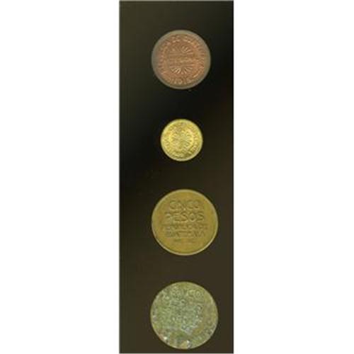 <B>Republic - Provisional Coinage - Quartet, </B></I>KM231 25 Centavos 1915, lustrous AU-UNC, KM232 50 Centavos 1922, choice BU, and KM234 5 Pesos 1923, two examples, VF-XF, large die break and VF, mint error struck 15% off center. <B>Sold as is, no return lot.</B></I>