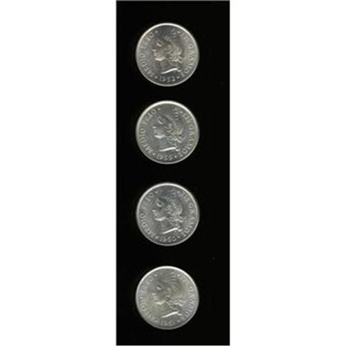 <B>Republic - Quartet of 1/2 Pesos, </B></I>KM21, four dates, all choice BU, 1952, 1959, 1960 and 1961.