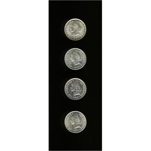 <B>Republic - Quartet of 10 Centavos, </B></I>KM19 1937, gem BU, 1942, gem BU, 1944, XF-AU, and 1951, nice BU. <B>Sold as is, no return lot.</B></I>
