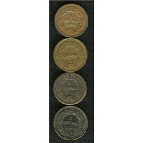 <B>Republic - Quartet of Centavos, </B></I>KM46 1898/88, nice brown VF-XF, 1899, VF, 1900, VF, very light porosity, and 1901/0, nice VF, bold overdate. <B>Sold as is, no return lot.</B></I>