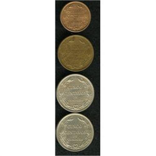 <B>Republic - Quartet of Minors, </B></I>KM10 1/2 Centavo 1934, brilliant UNC, very scarce, KM11 Centavo 1930, nice VF, and KM12 5 Centavos 1930, nice AU and 1934, cleaned XF. <B>Sold as is, no return lot.</B></I>