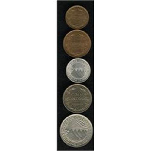 <B>Republic - Quintet of 1936 Issues, </B></I>KM10 1/2 Centavo, lustrous UNC, KM11 Centavo, lustrous AU-UNC, KM12 5 Centavos, nice original AU, KM13 10 Centavos, choice BU, and KM14 25 Centavos, brilliant UNC.