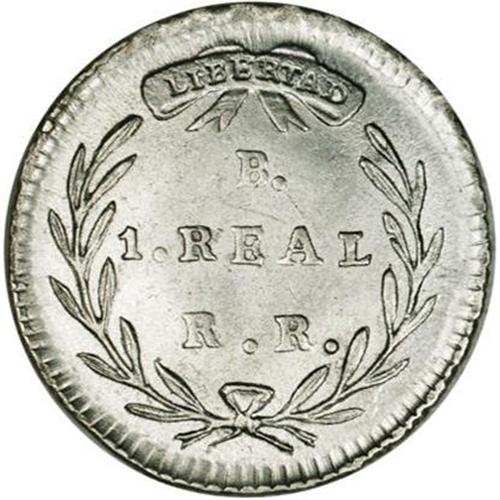 Republic Real 1827-RR Bogota, KM87.1, MS65 NGC, a spark Republic Real 1827-RR Bogota,