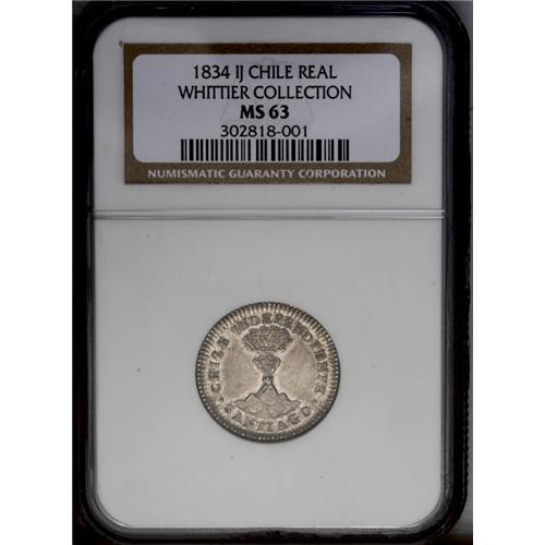 Republic Real 1834-IJ, KM91, MS63 NGC, an incredibly at Republic Real 1834-IJ,