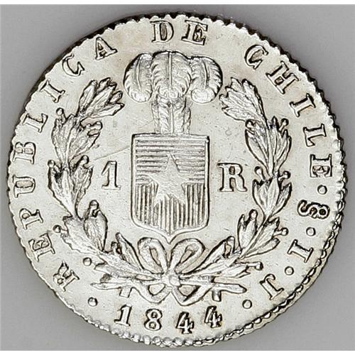 <B>Republic Real 1844-IJ, </B></I>KM94.2, bold AU-UNC, cleaned but still quite attractive.