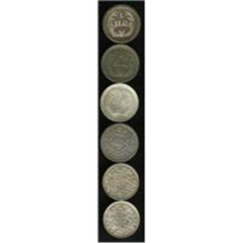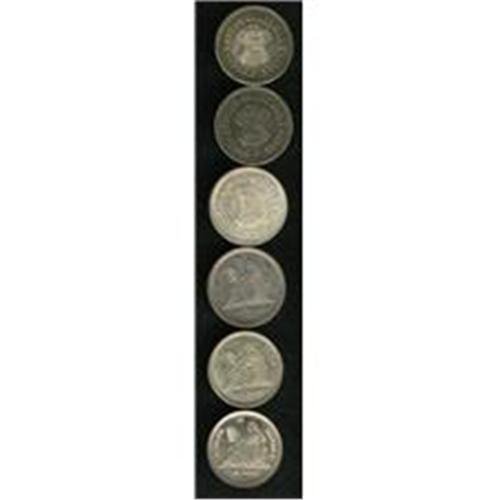 <B>Republic Real Type & Date Assortment, </B></I>KM148.1, 1872P, toned AXF and 1874P, toned AXF, KM148.2 1878 lightly cleaned XF, KM153 1879D, VF-XF and quite scarce, KM153a.2, 1890, 0/8, choice BU, and 1893 star, choice toned UNC. <B>Sold as is, no return lot.</B></I>