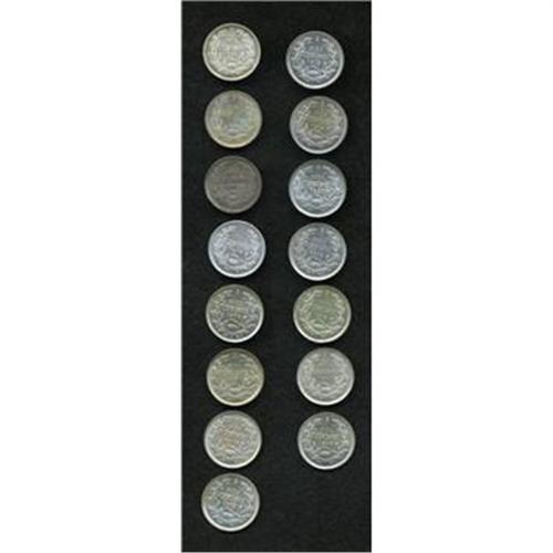 <B>Republic Silver 10 Centavos Collection, </B></I>fifteen different dates or types, all UNC unless noted: KM156.1 1896, KM156.2 1899, 1901, Fine and rare, 1904, 1906, 1907, KM152.2a 1908, 1909, 1913, 1919 and 1920 and KM156.3 1915, 1916, 1917 and 1918. <B>Sold as is, no return lot.</B></I>