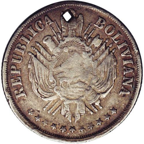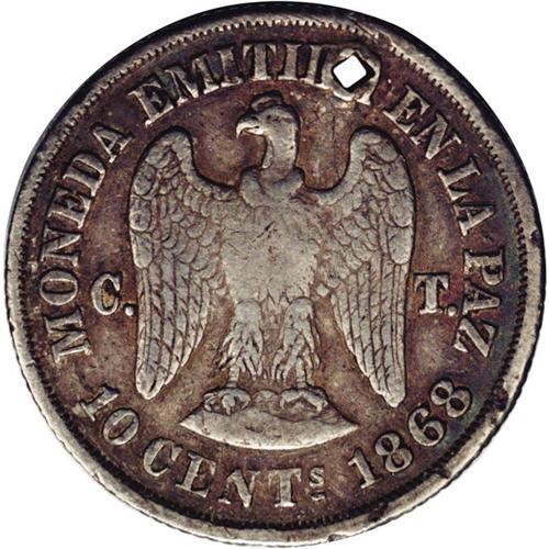 <B>Republic Silver Pattern 10 Centavos 1868, </B></I>KM-Pn17, VF and holed near the rim, here is a pattern which obviously circulated!