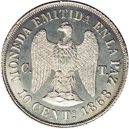 Republic Silver Piefort Pattern 10 Centavos 1868, KM-P4 Republic Silver Piefort Pattern 10 Centavos