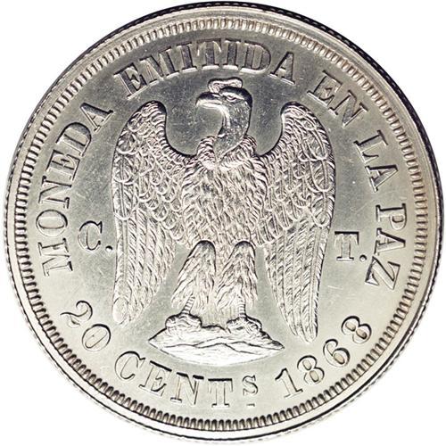 Republic Silver Piefort Pattern 20 Centavos 1868, KM-P5 Republic Silver Piefort Pattern 20 Centavos