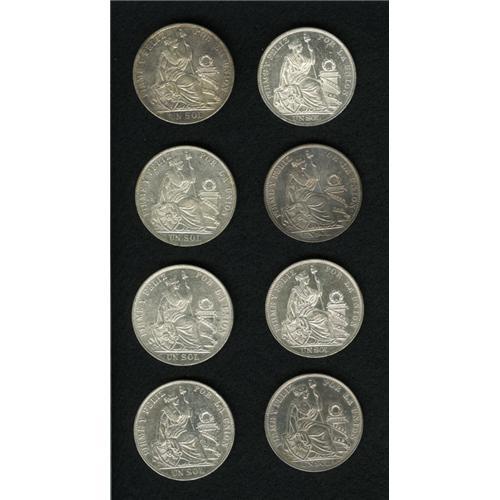 <B>Republic Sol - Date Run Continues, </B></I>KM196, eight nice examples featuring: 1889-TF, toned UNC, 1890-TF, AU, 1891-TF, UNC, 1892-TF, AU, 1893-TF, BU, 1894-TF, toned UNC, 1895-TF BU and 1896-F, AU. <B>Sold as is, no return lot.</B></I>