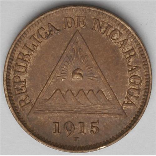 <B>Republic - Trio of 1915H Types, </B></I>KM10 1/2 Centavo, sharp brown AU, KM11 Centavo, UNC, lightly dipped long ago, very scarce date and grade, KM12 5 Centavos, nice VF. <B>Sold as is, no return lot.</B></I>