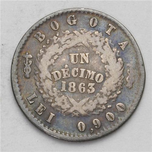 Republic - Trio of Decimos, KM145.1, 1863 Bogota, nice Republic - Trio of Decimos,