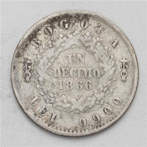 <B>Republic - Trio of Decimos, </B></I>KM145.1, 1863 Bogota, nice toned AVF and 1866 Bogota, F-VF, and KM145.1, 1866 Bogota, one-year type with fineness reduced to .835, strong AVF.