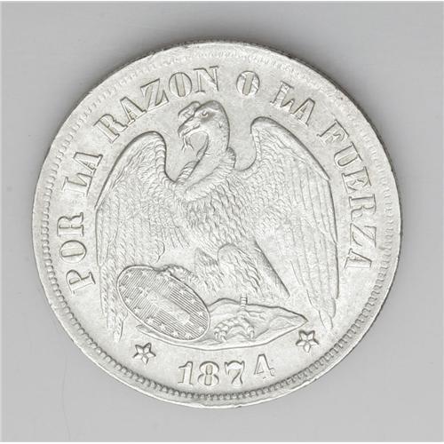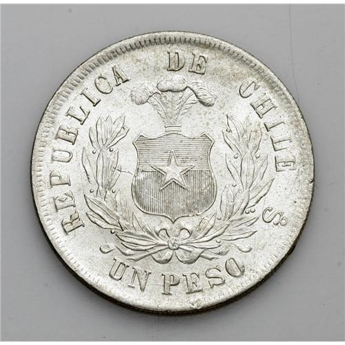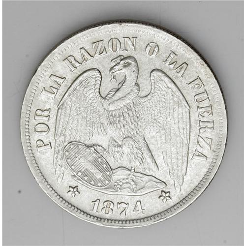 Republic Trio of Pesos, KM142.1, 1874, fully lustrous U Republic Trio of Pesos,