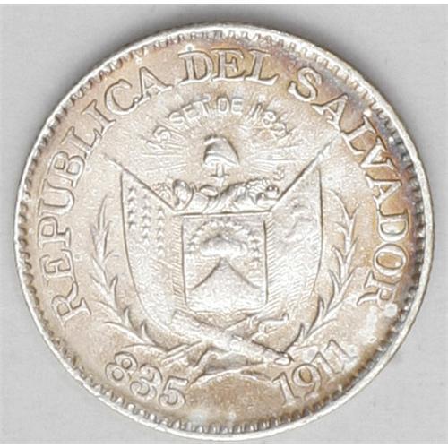 <B>Republic Trio of Silver Types, </B></I>KM121 5 Centavos 1911, choice lightly toned UNC, KM122 10 Centavos 1911, brilliant AU-UNC and KM123 25 Centavos 1911, lustrous UNC.