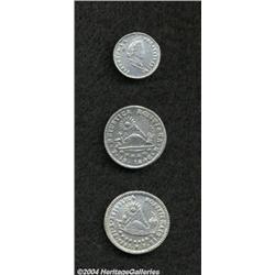 Republic. Trio of Trial Strikes, uniface trial strikes in lead of the following gold types: KM113 1/2 Scudo struck from 1852-1857, obverse strike with Bolivar facing right and the complete legends, UNC 14 mm, KM105 Scudo dated 1846, reverse strike, UNC 18 mm and KM114 Scudo dated 1855, uniface reverse, UNC 19 mm.From the Morris Geiger Collection. 3 coins Important notice: Heritage usually auctions material at the rate of 200-250 lots per hour. On some occasions eBay Live bid software or the Internet may not be able to keep up with the pace of the auction. We recommend placing a realistic absentee bid now as insurance to avoid disappointment. Occasionally the auctioneer may eliminate or reject an eBay Live bid, and the auctioneer may also reopen a lot after the close of the eBay live bidding (usually because we missed an audience bid), and may reject your bid even if it shows you as the winning bidder. By bidding via eBay Live, you agree that Heritage may award the lot to another bidder at its sole discretion under the circumstances described above or any other reasonable circumstances. Also please note that all Heritage lots purchased through eBay Live carry a 20% Buyer's Premium. Please make sure you read the Terms and Conditions before you bid.
