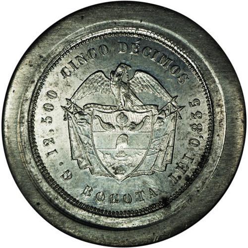 Republic Uniface Die Trial 5 Decimos Bogota ND (1868), Republic Uniface Die Trial 5 Decimos Bogota N