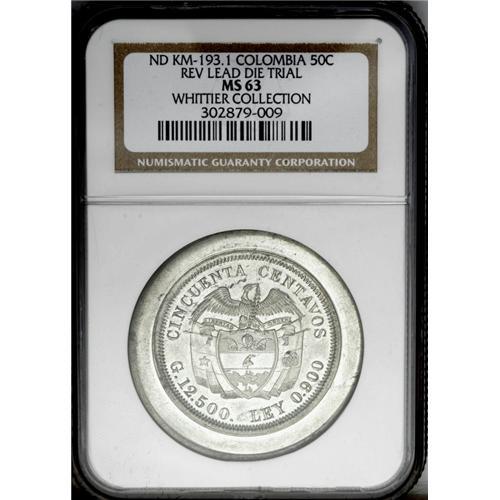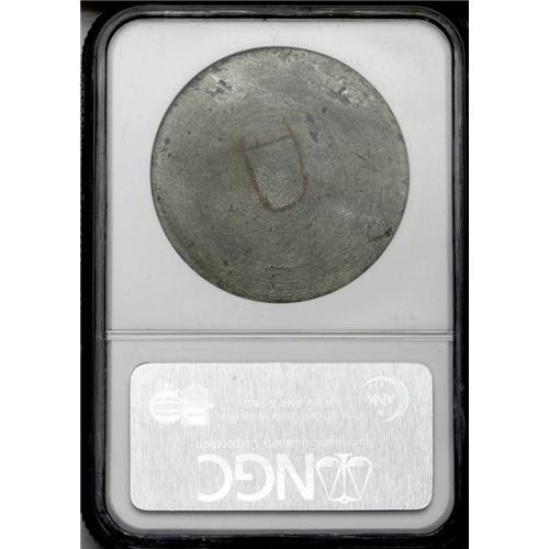 <B>Republic Uniface Die Trial 50 Centavos ND (1912), </B></I>the reverse die for the 50 Centavos KM193.1 struck on a large lead planchet. MS63 NGC. Ex-Henry Christensen 860481 with the original envelope.