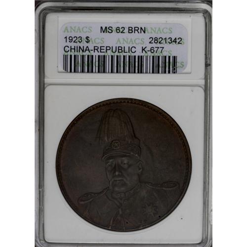 <B>Republic.Yuan Shih-kai Copper Pattern Dollar ND (1914),</B></I> type of KM-Y322, KM-Pn34, MS62 Brown ANACS. ANACS has incorrectly attributed this piece on the holder as Kann-677.