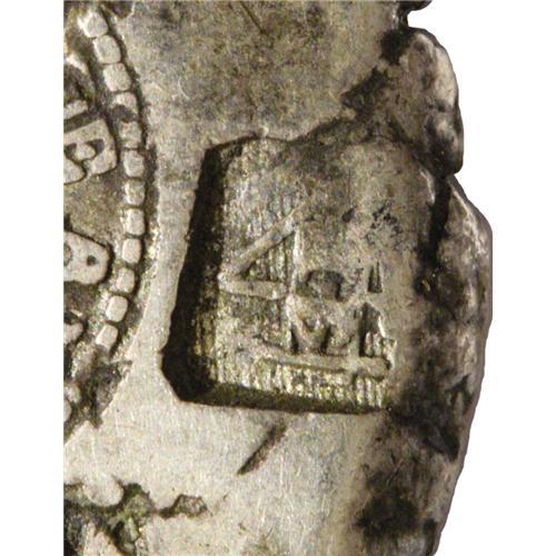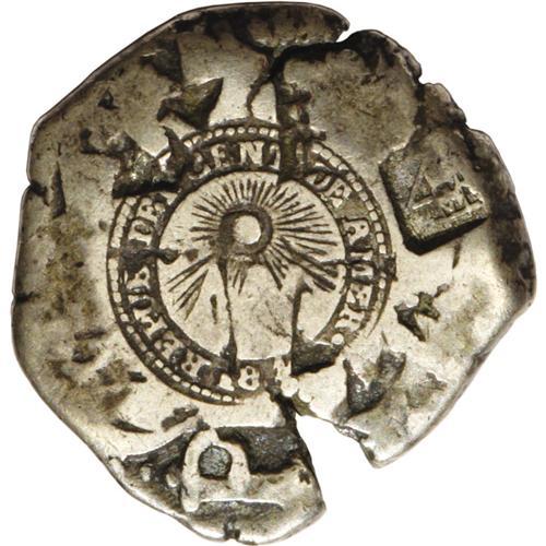<B>Republic cob 4 Reales with 1846 Counterstamp, </B></I>similar to KM50 except the host coin is a cob 4 Reales of Bolivia, crude Fine with planchet splits as made. The countermark is the 1846 1R die and this example also displays the "4 in the square with 4R" counterstamp. 13.10 grams.<BR><BR><b>Shipping:</b> Coin/Currency (<a target="_blank" href="http://www.heritageauctions.com/common/shipping.php">view shipping information</a>)