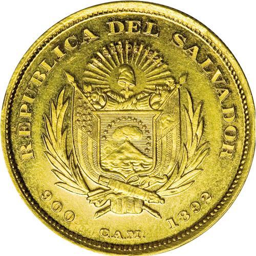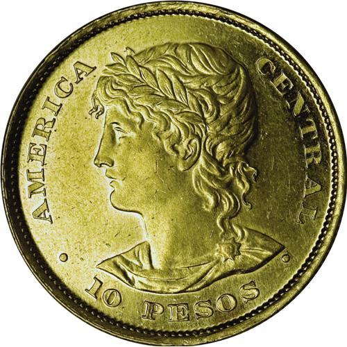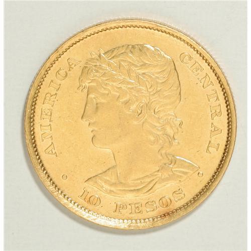 <B>Republic gold 10 Pesos 1892, </B></I>KM118, AU-UNC, a magnificent example with prooflike luster and extremely sharp details, one of the finest we have seen. Very rare type and virtually impossible to obtain in this select quality.<BR><BR><b>Shipping:</b> Coin/Currency (<a target="_blank" href="http://www.heritageauctions.com/common/shipping.php">view shipping information</a>)
