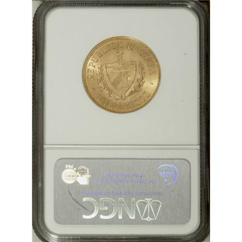 Republic gold 10 Pesos 1916, KM20, MS61 NGC, a nice exa