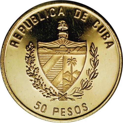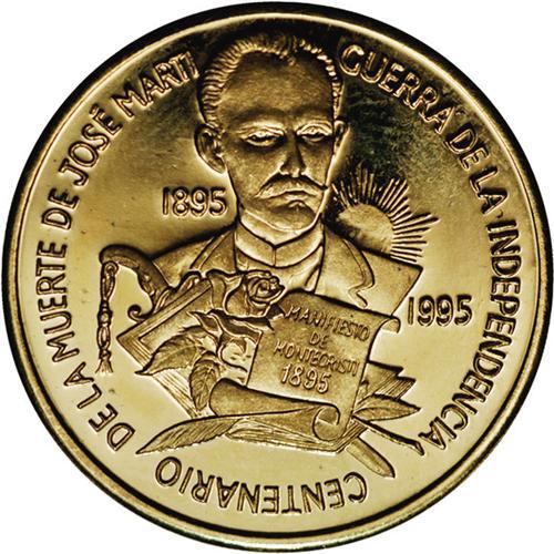 <B>Republic gold 50 Pesos 1995, </B></I>appears to be unlisted in the SCWC and Friedberg, choice cameo Proof, struck to honor the 100th anniversary of the death of Jose Marti, "fighter for independence." Reeded edge, 13.27 grams.<BR><BR><b>Shipping:</b> Coin/Currency (<a target="_blank" href="http://www.heritageauctions.com/common/shipping.php">view shipping information</a>)