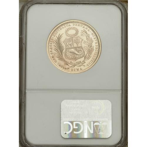 <B>Republic gold 50 Soles 1962/52, </B></I>KM230, MS67 NGC, a choice example with prooflike surfaces.<BR><BR><b>Shipping:</b> Coin/Currency (<a target="_blank" href="http://www.heritageauctions.com/common/shipping.php">view shipping information</a>)