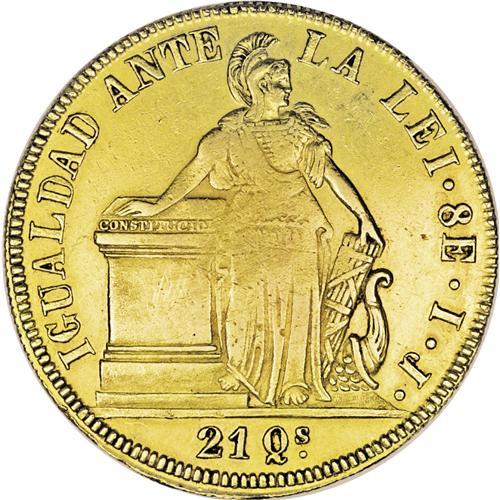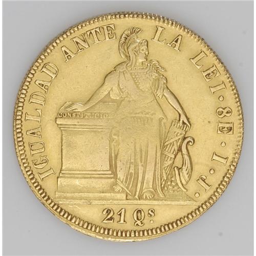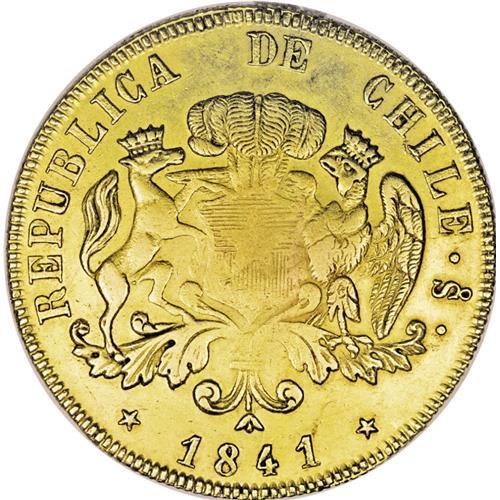 <B>Republic gold 8 Escudos 1841-IJ, </B></I>KM104.1, VF-XF with some traces of luster, lightly cleaned long ago and somewhat weakly struck centers.