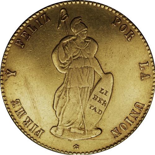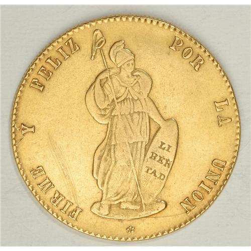 Republic gold 8 Escudos 1853-MB Lima, KM148.4, sharp XF