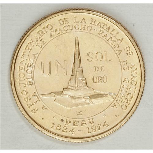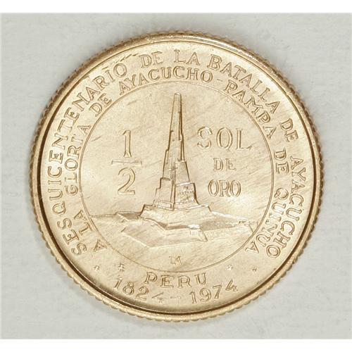 <B>Republic gold Commemorative Pair, </B></I>KM268 1/2 Sol 1976, choice BU, and KM269 Sol 1976, prooflike BU, both struck to mark the 150th anniversary of the Battle of Ayacucho.<BR><BR><b>Shipping:</b> Coin/Currency (<a target="_blank" href="http://www.heritageauctions.com/common/shipping.php">view shipping information</a>)