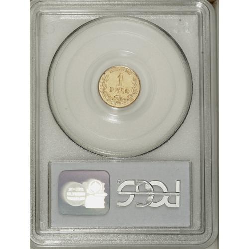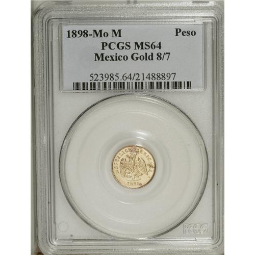 <B>Republic gold Peso 1898/7-Mo-M, </B></I>KM410.5, MS64 PCGS, faint hairlines on the reverse, the 9 also appears to be punched over a 7.