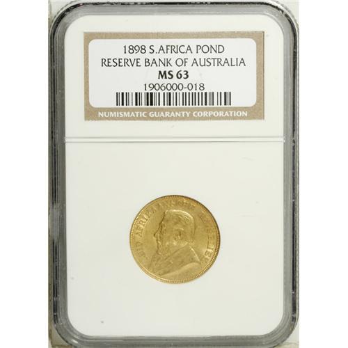 <B>Republic gold Pond 1898,</B></I> KM-10.2, MS63 NGC Reserve Bank of Australia.<BR><BR><b>Shipping:</b> Coin/Currency (<a target="_blank" href="http://www.heritageauctions.com/common/shipping.php">view shipping information</a>)