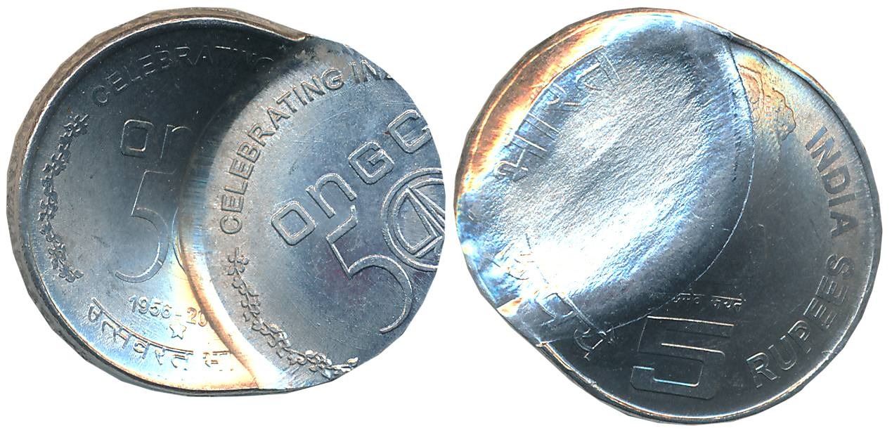 FSS, Rupees 5, Error- Double struck, “ONGC”. About uncirculated, extremely rare.