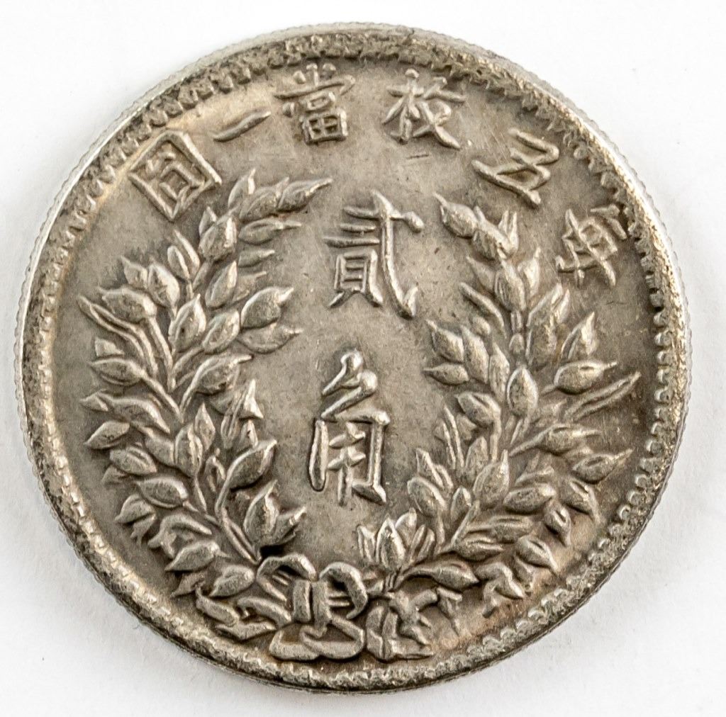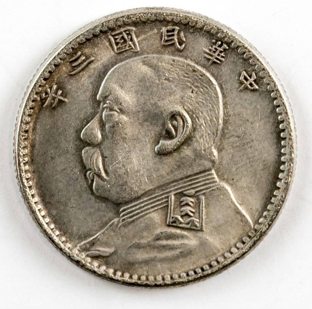 Chinese Republic of China 3rd year (1914) coin. Denomination: 20 cents.
