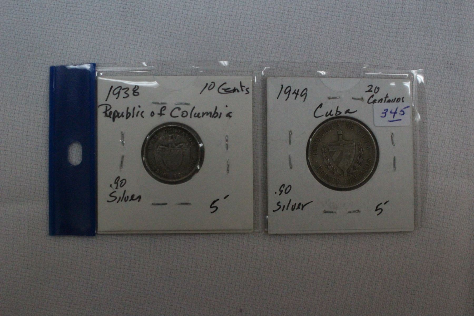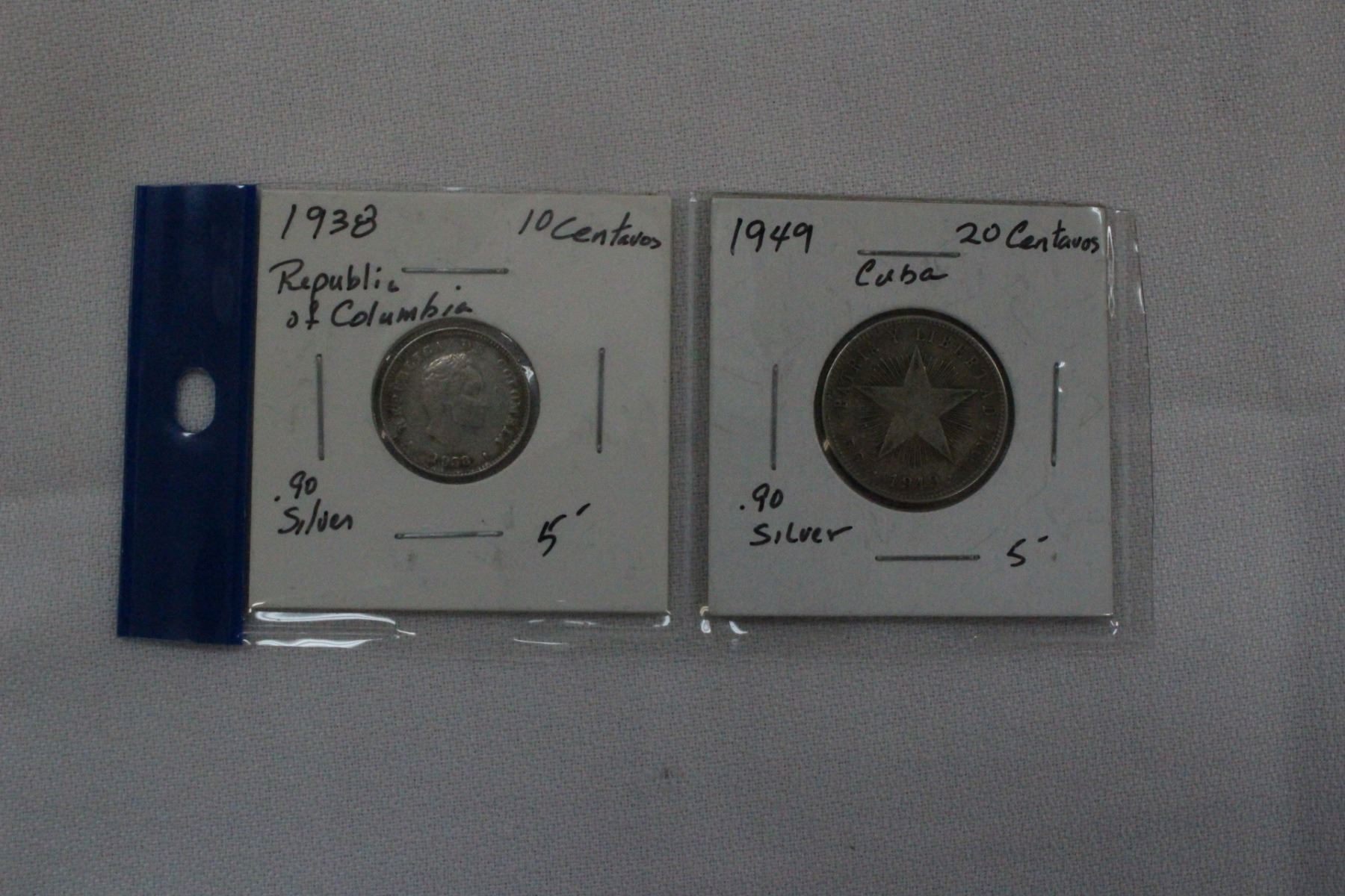 Republic of Columbia (10c) 1938 & Cuba (20c) 1949 - .9 Silver