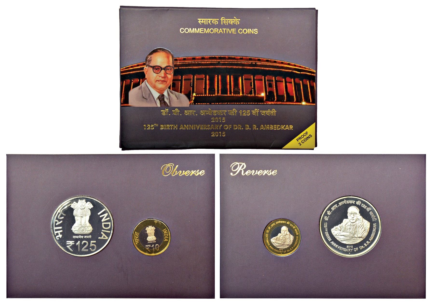 Republic of India: 2015, 125th Birth Anniversary of Dr. B.R. Ambedkar, Proof set of 2 coins, 125 rupees and 10 rupees, Mumbai mint, in original mint packing.
