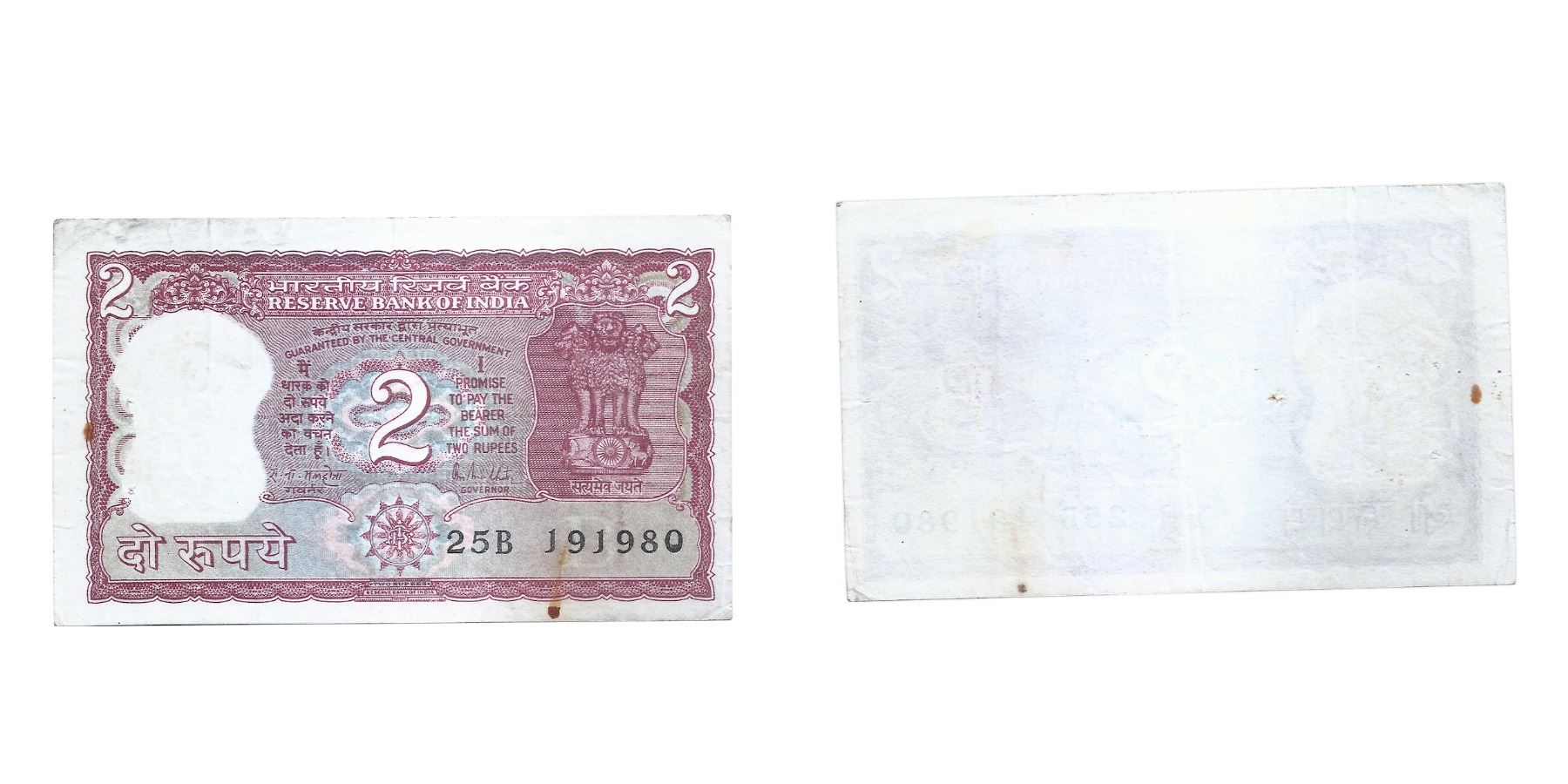 Error, Republic India, 2 Rupees Reserve Bank of India, Full Standing Tiger Issue ,Signed by RN Malhotra, Serial number in black, D Prefix, S. No. 25B 191980, Insufficient printing error on reserve, Rare, Very fine