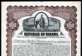 1928, $500. 5% 35 year external secured sinking fund gold bond Series A. Purple border with allegorical women and harbor scene. Hamilton Bank Note, NY, unused, EF