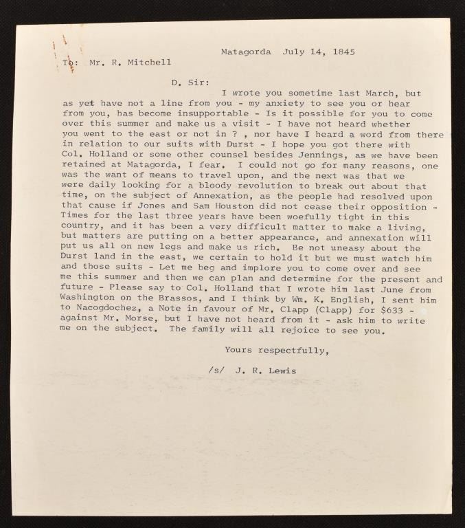 Letter transcript included. Refers to Annexation. 10.25" x 8"