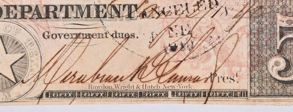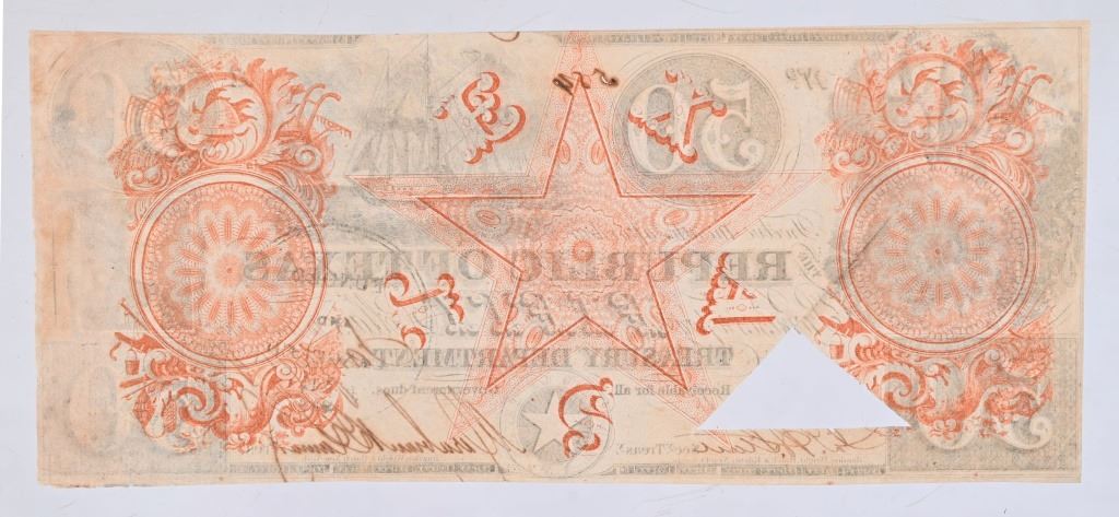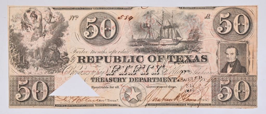 Republic of Texas Mirabeau Lamar Signed $50 Note