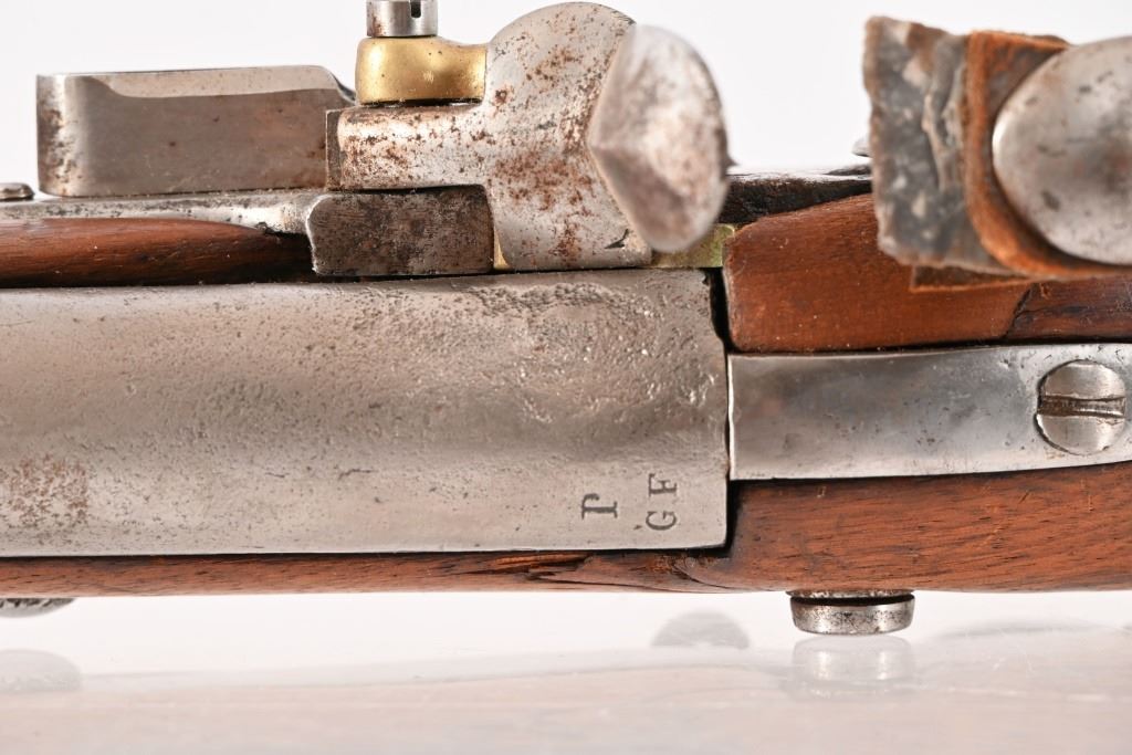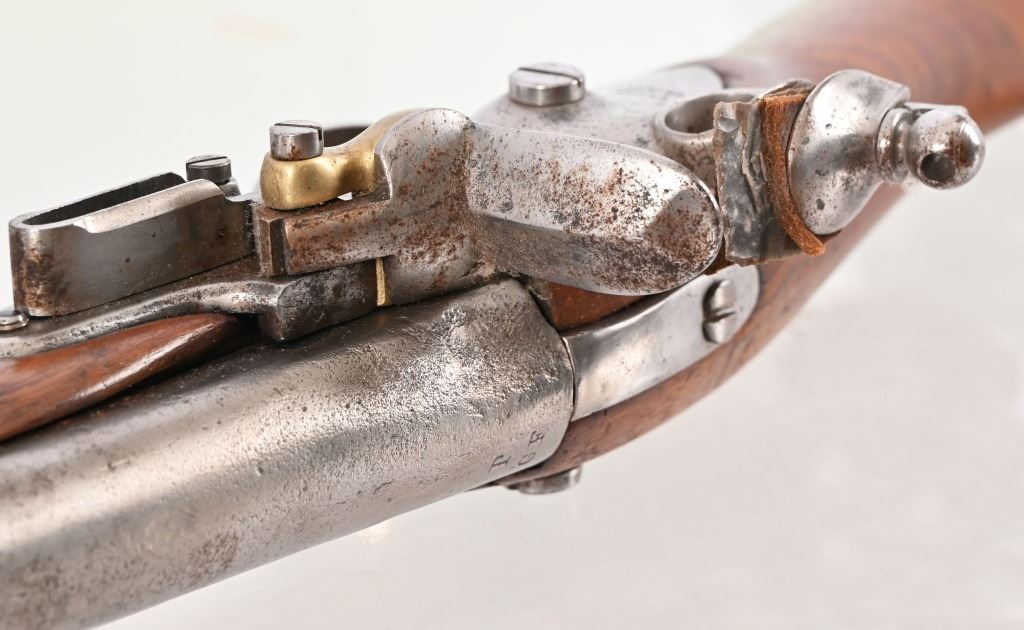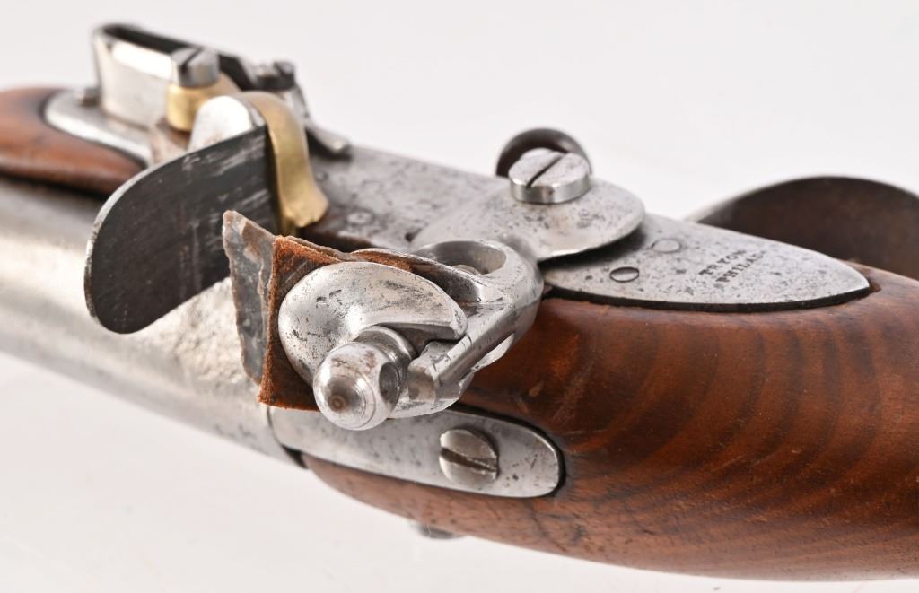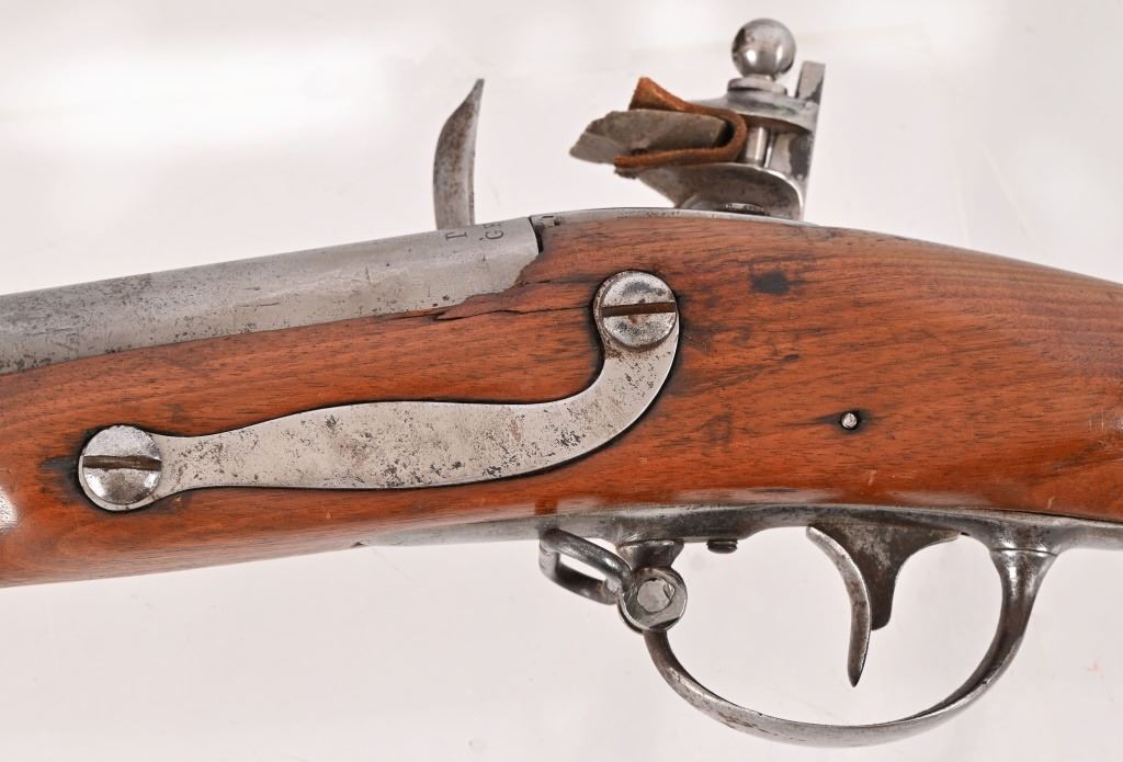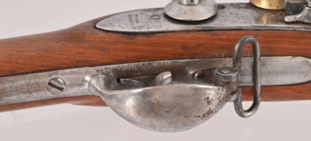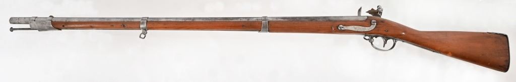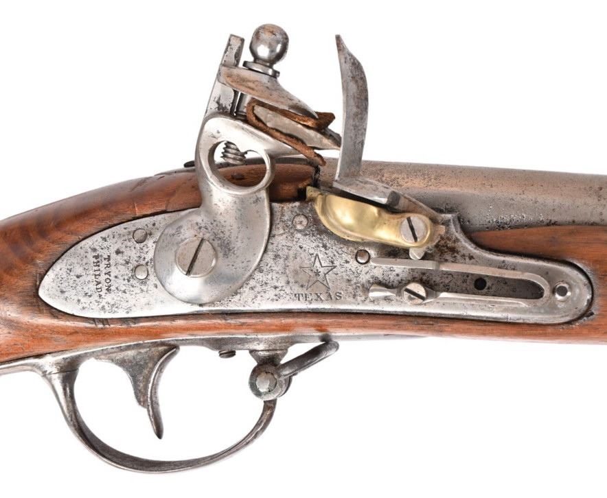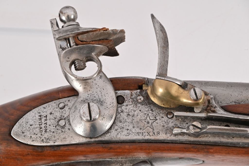 Extremely rare. Manufactured by Tryon in Philidelphia, President Mirabeau B. Lamar ordered 1,500 Tryon muskets like this one from the Tryon Company of Philadelphia to supply the army. The first half order approximately Flintlock, smoothbore, 40" barrel. Antique