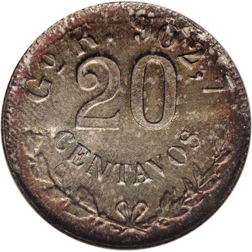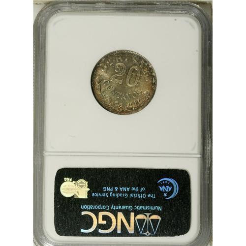 Republic silver 20 Centavos 1899-GoR, KM-405.1, MS67 NG