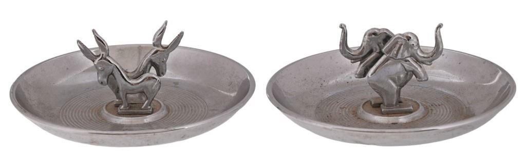 Donkey and elephant ashtray pair. Both marked Hamilton Product N.Y.C.