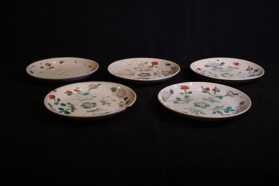 Republican Era, a set of five Famille-Rose "Floral" plates.